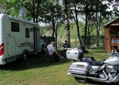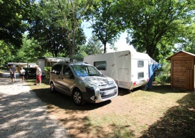 Un emplacement spacieux 100 m² environ dans un camping arboré délimité par des haies naturelles avec wifi, eau, électricité 10A ou 16A et évacuation.